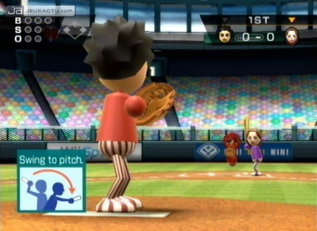 Moins intéressant : le base-ball. Ici, il se résume à deux types de jeu : le lancer et la frappe. Là aussi, il faudra se contenter du strict minimum puisque la Wiimote ne gère rien d’autre que ces deux mouvements basiques. Autant être franc et ne pas perdre de temps, le base-ball est certainement le sport le moins intéressant de toutes les activités proposées. On s’amuse les premières minutes mais rapidement, l’ntérêt tombe rapidement à plat. Fort heureusement, le bowling vient rehausser le niveau avec des parties fichtrement addictives, grâce notamment à une détection plutôt réussie des ses mouvements. Mieux, en appuyant sur la touche A, il est même possible de donner une direction à la boule, afin d’enchaîner un maximum les strikes et autres supers. Dans la même veine, le golf propose une reconnaissance des mouvements assez bien fichue dans l’ensemble mais on regrette en revanche un nombre de parcours assez limité et l’absence d’un véritable objectif pour nous tenir en haleine plus longtemps. Reste alors la boxe qui nécessite l’utilisation du Nunchuk et propose les mouvements les plus basiques de ce sport. Droite, gauche, crochet, frappes au ventre, protection, esquive, il y a de quoi se piquer au jeu, d’autant qu’il est possible de brûler quelques calories au passage. Chouette.