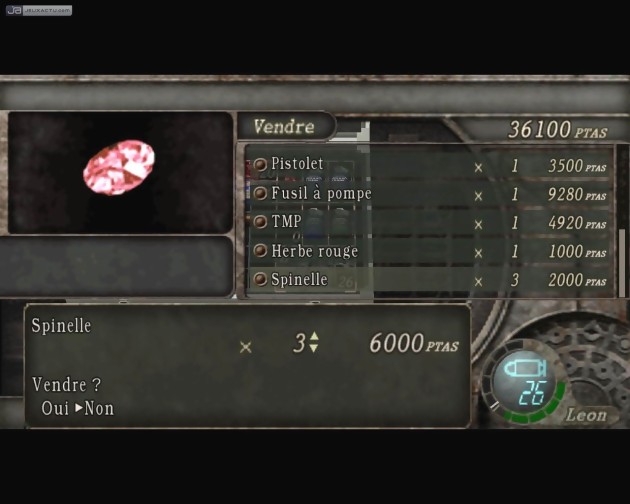 Pour inciter le joueur à bouffer du monstre à tout va et éviter les séances d'esquive intensives à l'ancienne, les gars de chez Capcom ont ajouté quelques artifices sortis tout droit de l'univers du RPG. En effet, la plupart des joueurs refusaient les confrontations directes avec les zombies pour éviter d'être à court de munitions ou de produits restaurateurs. Dorénavant, chaque méchant loup terrassé laisse parfois derrière lui quelque munitions, de l'herbe médicinale voire des pesetas pour se payer de nouvelles armes. Celles-ci sont disponibles chez n'importe quel marchand, et se paient même le luxe d'être upgradables : puissance de feu, rapidité de rechargement de l'arme, rapidité de tir et nombre maximal de balles chargeable en une seule fois. C'est la fête, quoi ! Killer7 (joli clin d'oeil au passage !), Rocket Launcher, Rifle, il y a le choix...! Se sent-on plus en sécurité ? Oui, un peut trop même. Cela devient carrément de la boucherie. Même si au départ cela semble assez amusant, le coté bourrin de Resident Evil 4 est l'un des points sombres qui vient écorner l'image quasi-parfaite du jeu. Car le nombre accru des adversaires à éliminer à l'écran oblige à tirer dans tous les sens. Du coup, on passe du survival horror au shoot'em up, et ce n'est probablement pas le but recherché par Capcom. En fait, un peu plus de rareté pour les munitions n'aurait sans doute pas fait de mal.