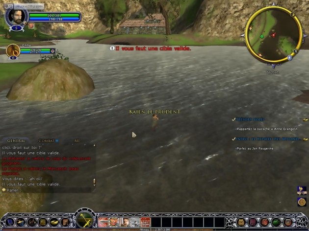 Qu’on se le dise, il n’est pourtant l’instant possible d’incarner qu’un héros d’une race de l’Alliance et bien évidemment pas les personnages principaux : Aragorn, etc. On sera toutefois amené à les rencontrer au cours de nos périnégrations et principalement lors de l’accomplissement de la quête épique. Turbine s’est laissé une marge confortable pour la suite des opérations. En effet, seule la région de l’Eriador a été modélisé. Le territoire est suffisamment vaste pour le moment mais il faudra probablement patienter un moment avant de pouvoir arpenter les terres du Rohan, du Gondor ou encore du Mordor. Du coup, l’histoire ne couvre pour l’instant que les premiers chapitres des livres, à savoir la fuite de Frodon de la Comté et les péripéties du Poney Fringant. Une intrigue suffisamment riche pour former toutefois un excellent complément aussi bien aux livres qu’aux films. On y apprend notamment quelques détails relativement croustillants pour les fans : la recherche de Frodon par les Nazgûls, comment Aragorn a-t-il su qu’il serait au Poney Fringant ou encore le rôle de ces mystérieux rôdeurs. Alors bien entendu, on est relégué à des tâches bien plus ingrates que celle du porteur de l’anneau : "tuer X monstres", "ramasser 10 fleurs de lys", "ramener un gant matelassé à un bûcheron", "récupérer des objets volés", etc. mais aussi de façon générale participer à la défense et la reconstruction des villes détruites ou encore aider la confrérie des rôdeurs. Généralement menées avec panache, certaines quêtes apportent une touche d’humour bien sympathique : jouer les courriers du cœur, amener un seau d’eau à tel endroit sans le faire tomber ou encore suivre discrètement un chien. Le farmage ou plus communément les joueurs acharnés à taper du monstre toute la journée n’y trouveront pas leur compte car le système d’expérience ne joue pas en leur faveur. Tuer un monstre, même de classe Elite ou de niveau supérieur au sien ne rapporte pas grand-chose. Il était capital que le jeu véhicule les valeurs du Seigneur des Anneaux : entres autres l’amitié, l’esprit d’équipe et le partage. A ce titre, le système de quêtes est logiquement au centre du jeu. Vraiment nombreuses, il est possible d’en accomplir beaucoup en solo mais composer un groupe (jusqu’à 6 personnes) est la manière la plus efficace pour y parvenir.