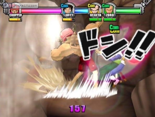 Parce qu'on ne parle que de lui en cette fin de mois de juillet 2006 au Japon, nous avons également décidé de nous procurer une version PS2 de Battle Stadium D.O.N, ce Smash Bros-like qui regroupe les meilleurs personnages de l'univers de Dragon Ball Z, One Piece et Naruto. Les trois plus grand succès de Shônen Jump dans un seul et même jeu, on n'avait pas vu ça depuis Jump Super Stars sur Nintendo DS. Mais cette fois-ci, ça se passe sur GameCube et PS2 pour une envergure plus importante puisqu'il sera possible de jouer jusqu'à 4 en même temps. Les Kaméhamé, Rasengan et autres Kage bushin no jutsu se croisent à volonté pour des batailles épiques. En attendant de tout débloquer pour un test import complet à venir, voici une grosse série d'images maison (130 en tout) pour patienter.