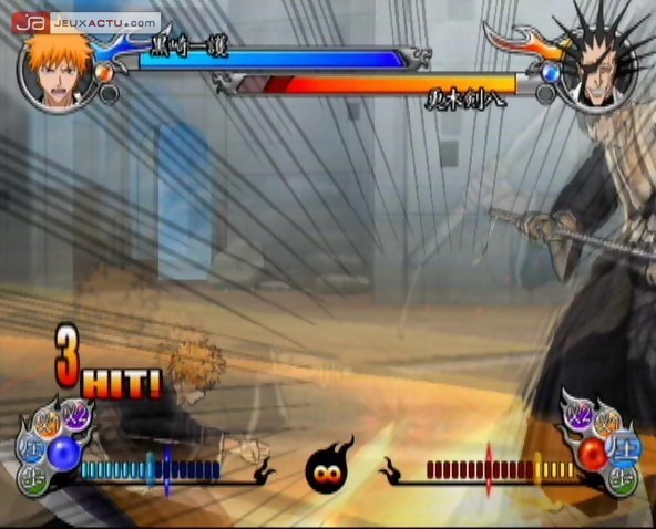 L'autre manga et série animée qui ne cesse de prendre du galon au Japon n'est autre que Bleach, mis en images par Tite Kubo qu'on ne présente plus auprès de ses fans. Le succès du manga a bien évidemment attiré les éditeurs de jeux qui se sont emparés de la licence pour l'adapter sur consoles. Sony Computer Entertainment et Sega se partagent le gâteau et pour Bleach GC, c'est la firme du hérisson bleu qui détient les droits. Disponible depuis le 8 décembre dernier et fraîchement arrivé dans nos locaux, Bleach GC est un jeu de baston classique qui n'est pas sans rappeler l'excellente série Naruto Gekito Ninja Taisen! en termes de simplicité d'accès. Les attaques et autres combos se déclenchent assez facilement bien que le jeu dispose de quelques subtilités pour tenter d'ntéresser les joueurs plus âgés. Malheureusement, Sega ne possède pas le même savoir-faire que 8ing et le résultat pour Bleach GC est assez affligeant, voire même catastrophique. En attendant de vous donner notre avis dans un prochain test import, voici quelques images faites maison.