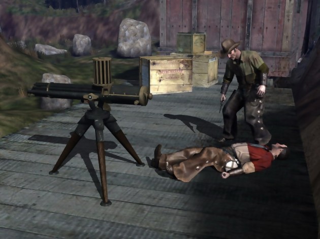 Durant cette présentation, nous avons pu jouer à deux missions différentes, une par personnage. Nous aurons sans doute alors droit à deux types de gameplay. Avec Billy, vous découvrirez de vastes extérieurs. Il utilisera peut-être des armes à feu mais ce n’est pas sur. Sa fréquentation des indiens lui a appris à vivre en communion avec la nature. Nous avons donc pu nous exercer au maniement du fouet pour nous accrocher à des branchages incrustés dans la roche et ainsi escalader des montagnes mais aussi au tir à l’arc et à l’équitation. Il sera également possible de combiner ces deux dernières disciplines mais s’annonce assez difficile. Les missions avec le révérend paraissent quant à elles plus urbaines (par urbain, il faut avoir en tête des villes du far-west !). Il sera face à des dizaines de hors la loi dans un environnement assez hostile. Le moteur physique n’est pas très éloigné de celui de Half-Life², on trouve en effet beaucoup d’interactivités avec les décors. Avec ce personnage, nous sommes bien plus proches du FPS qu’avec Billy. Ray utilise les armes à feu et pour bien profiter de l’ambiance western, certains mécanismes de jeu apportent quelque chose de supplémentaire. Souvenez-vous de Blondin, dans Le bon, la brute et le truand… Sous son poncho, il a tendance à tirer très vite. Comment fait-il ? Avec la paume de sa main gauche, il actionne le chien de son pistolet manuellement. On peut faire la même chose ici ! Il est également possible de passer dans un mode concentration, tout se déroule alors au ralenti, un peu comme dans un Max Payne. Avec un calibre dans chaque main, les hordes ennemies n’en mèneront pas large. Deux mécanismes de jeu hautement immersifs qui vous feront facilement entrer dans la peau de Clint Eastwood ou de Lee Van Cleef. Dernière chose, plutôt amusante, il reste possible de déconcentrer les ennemis. N’oubliez pas que ce personnage est révérend et, en plus de son artillerie, il possède donc également une bible. Il peut donc se permettre d’arriver face à l’ennemi en récitant des psaumes pour tirer ensuite. L’ennemi, voyant cet olibrius déclamer du St Marc à travers les balles reste perplexe quelques secondes et c’est à ce moment là que le révérend en profite pour le convertir totalement au 9mm. Espérons alors que le doublage sera correctement réalisé, comme souvent chez Focus. La rumeur du moment laisse d’ailleurs entendre que les voix françaises pourraient bien être celles de la série TV Deadwood. De toute façon, que ce soit eux ou pas, le langage devrait être assez fleuri.