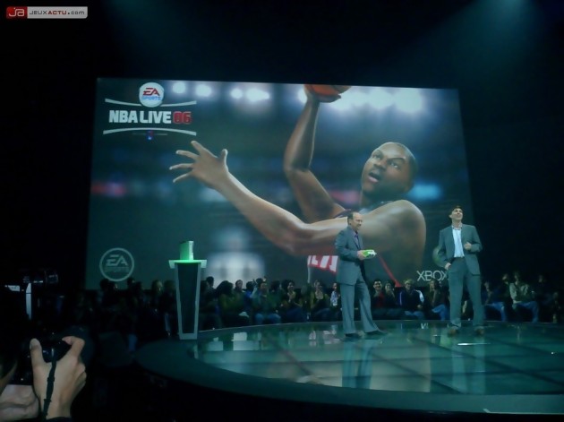 Près de 40 minutes après le début du show, vint enfin le moment que tout le monde attendait : la présentation des jeux exploitant les capacités de la Xbox 360. Si 4O jeux sont prévus au lancement et 160 sont actuellement en développement, seuls une dizaine de titres ont été dévoilés lors de cette conférence. Certains ont eu le privilège de bénéficier d’une vidéo de quelques secondes voire de quelques minutes pour nous donner des frissons, aussi bien dans le bon que dans le mauvais sens du terme. Des titres comme Kameo : Elements of Power sont loin de tirer profit des capacités de la Xbox 360. Perfect Dark Zero, l’un des titres prévus au lancement de la console, n’a même pas daigné se montrer sous une vidéo. Il y avait, certes, Project Gotham Racing 3, mais il s’agissait là d’une séquence animée en image de synthèse et non du jeu in-game, encore une fois. Call of Duty 2 peut-être ? Assez proche de la version PC, la vidéo semblait accuser quelques soucis de fluidité. Non, il faudra se tourner vers Gears of War pour se prendre une méchante claque. Car il faut bien l’avouer, les petits gars de chez Epic Games connaissent bien leur moteur : le Unreal Engine 3. Le résultat et l’ambiance étaient enfin à la hauteurs de nos espérances. Et pour ne point décevoir son public, Microsoft a fait appel à des éditeurs tiers. Don Mattrick, président des pôles de développement chez EA a apporté son soutien au géant américain et annonce la sortie de 6 nouveaux titres pour la sortie de la console en novembre. Need For Speed : Most Wanted, Le Parrain, FIFA 2006, NBA Live 2006, Tiger Woods PGA Tour 06 et Madden NFL 2006 devront apporter leur soutien au lancement de la console. Peu après, nous apprenions l’arrivée d’un éditeur de taille et qui devrait appâter davantage de joueurs japonais. Square-Enix fait également partie de ceux qui croient en l’avenir de la Xbox et leur premier titre développé sur Xbox 360 n’est autre que Final Fantasy XI. La firme de Richmond place tous ses atouts de son côté et pour se convaincre, n’hésite pas à proclamer haut et fort que nul ne peut lutter contre la Xbox 360, machine surpuissante aux yeux de Peter Moore, qui a certainement dû oublier de regarder les spécificités de la PS3… Pour terminer, Microsoft avait prévu d’organiser une petite soirée au même endroit pour détendre l’atmosphère et permettre aux personnes présentes à la conférence de se rassasier. Il était possible alors de contempler de plus près la Xbox 360 et de prendre la manette en main. Puisque nous avons pu la trifouiller pendant plusieurs minutes, on peut vous confirmer que l’ergonomie du pad est bien au rendez-vous mais que la croix directionnelle laisse franchement à désirer. La soirée s’est ensuite achever par un concert de The Killers, suivi des Chemical Brothers. Microsoft ou l’art du spectacle…