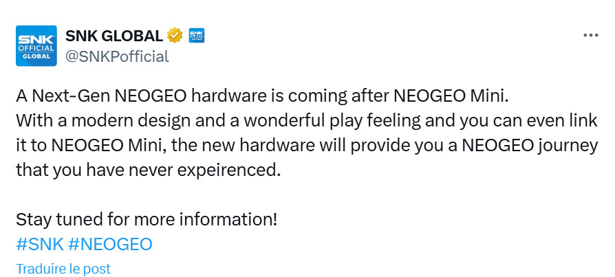NEOGEO : une toute nouvelle console next-gen va être dévoilée par SNK, en voici les premiers détails !