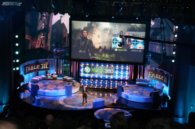 Côté blockbusters, Cliff Bleszinski n'a pas manqué de nous faire son show en nous dévoilant une démo en coop' de Gears of War 3. Accompagné de trois autres camarades d'Epic Games, notre homme nous a prouvé que défourailler du Locuste est autrement plus fun à plusieurs, d'autant que de nouvelles aptitudes ont été ajoutées à nos personnages préférés, comme cette charge qui permet d'éventrer son adversaire avec férocité. Peter Molyneux était également de passage sur la scène du Wiltern Theater pour nous présenter Fable III qu'il promet révolutionnaire. L'homme aux belles paroles ne s'éternisera malheureusement pas car les développeurs de Halo Reach étaient là pour nous dire du bien du mode solo, qui s'annonce tout de même intéressant puisqu'il se jouera également en coop' jusqu'à quatre soldats motivés. C'est d'ailleurs par cette démo que la partie gamer s'est achevée, laissant ainsi le champ libre aux concepteurs de feu projet Natal, venus nous parler des bienfaits dont pourra bénéficier le joueur chez lui, devant son canapé. Navigation instinctive et reconnaissance vocale, on n'aura plus besoin de manette pour communiquer avec la machine, comme on a pu le voir plus en détails à travers les premiers jeux Kinect dévoilés. Il ne fait d'ailleurs plus aucun doute quant à l'envie de Microsoft de suivre les traces de Nintendo tant les jeux apparaissent comme des copiers/collers de ce qui existe déjà sur Wii. Entre Kinect Sports, Kinectimals, Dance Central et Kinect Adventures, c'est toute la famille qui pourra s'amuser devant son téléviseur. Même Wii Fit aura son pendant Xbox 360 grâce à Ubisoft et à son Your Shape : Fitness Evolved qui aura convaincu l'assemblée par ses prouesses dans la quasi-immédiateté de la reconnaissance des mouvements.