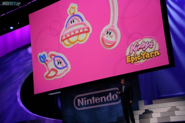 Plutôt à l'aise avec son discours bien rôdé, Reggie Fils-Aimé revient sur scène pour évoquer quelques chiffres afin de démontrer - comme à son habitude - à toute l'assistance que Nintendo est inattaquable sur son terrain, à savoir le jeu casual. Une exposition de chiffre immédiatement suivie d'une vidéo de Wii Party, nouveau cheval de bataille multi de la firme japonaise et mise en relief idéale des propos de Reggie, ainsi que d'un Just Dance 2 tout aussi fédérateur sur le papier. Encore une fois la conférence trouve un contrepoids avec un premier trailer de Golden Sun : Dark Dawn et l'annonce de Golden Eye 007. Un jeu de niche très attendu par les amateurs d'une excellente série de J-RPG qui méritait une suite depuis longtemps et la renaissance de l'un des FPS les plus respecté de l'histoire de Nintendo. Un coup double servant de point de départ à un changement radical dans la communication du géant japonais, centré depuis plus de 4 ans sur ses périphériques. Cette fois-ci, Nintendo veut présenter du jeu et ne pas faire la même erreur que Microsoft. Le gros avantage de la firme de Kyoto est que son matériel est maintenant rentré dans les moeurs et qu'elle n'a pas, ou peu, à faire ses preuves sur cet aspect. D'où la grande partie dédiée aux softs. Epic Mickey est donc présenté par un Warren Spector visiblement à l'aise avec un jeu pourtant assez difficile à vendre, entre son personnage principal à l'aura encore fortement connotée "enfance" et son univers relativement sombre. Les quelques minutes de gameplay suffisent néanmoins à donner une bonne impression. Le titre semble original, cohérent et vraiment soucieux de créer une atmosphère unique. Un aspect créatif important qui fait le lien avec un Kirby Epic Yarn à la direction artistique étonnante qui montre que les éditeurs tiers ne sont pas les seuls à tenter une approche différente d'une "licence" un peu figée. Une mise en avant d'un élément du catalogue maison qui va être suivie directement du combo Metroid : Other M et Donkey Kong Country Returns finissant d'asseoir la conférence dans l'univers Nintendo. Non que d'autres éditeurs n'y aient plus leur place, mais la conférence se resserre sur la nostalgie et la cohérence pour étendre un tapis rouge symbolique à la 3DS. Sorte de mélange entre l'un des produits faisant la fierté de Nintendo, à savoir la DS "classique" et un regard vers l'avenir avec la 3D, la machine est un peu à l'image de la conférence : prévoir les bases pour anticiper l'avenir. Présenté malheureusement assez succinctement, technologie pas très télégénique oblige, la nouvelle portable de Nintendo se montre de plus assez décevante au niveau design. Malgré des performances techniques annoncés relativement enthousiasmantes, l'absence du format 16/9 et la taille finalement assez réduite des écrans limitent ce sentiment. Une certaine déception qui aboutit néanmoins à une conclusion assez symptomatique du média après l'annonce du line-up de la console : ce sont les jeux qui comptent.