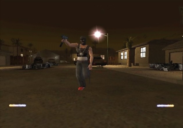 Bien évidemment, le soft comprend un mode solo qui s’imbrique ingénieusement au mode online. En effet, il faudra poursuivre l’aventure en solo afin de débloquer armes et objets utilisables en multi, de faire évoluer son personnage et de le personnaliser à sa guise. Une très bonne idée de la part des développeurs d’Avalanche Software. Le jeu édité par Eidos Interactive proposera pour les amateurs de hip-hop des musiques de DMX ou encore Tupac.