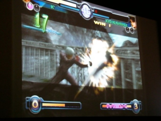 Le 25 août 1994 est une date à marquer d'une pierre blanche. C'est en effet ce jour que sortait The King of Fighters '94 sur Arcade. La cartouche Neo Geo qui affichait 196 Megs (un record pour l'époque !) est sortie peu après, le 1er octobre de cette même année pour ceux qui ne s'en souviennent plus. Pour fêter comme il se doit les 10 ans d'existence de cette magnifique série qui reste à ce jour la quintessence de la baston 2D, SNK Playmore a organisé une cérémonie qui s'est déroulé à Tokyo, dans le quartier de Shinjuku pour être précis. Outre la présence d'un petit tournoi organisé autour de KOF '94 sur Neo Geo, de KOF '94 Re-Bout (le remake sur PS2) et KOF : Maximum Impact sur des bornes PS2 prévues à cet effet, il fallait surtout saluer la présence de Falcoon (vêtu d'un pull rouge sur les photos), célèbre illustrateur qui travaille en étroite collaboration avec SNK Playmore. Il est à l'origine du character design de SNK VS Capcom : SVC Chaos mais aussi de celui de KOF 2003. Encensé par certains, décrié par d'autres, son coup de crayon ne laisse pas indifférent. Toujours est-il que le dessinateur a précisé lors de son discours qu'il n'y aurait pas de KOF 2004 cette année. La Neo Geo ayant pris définitivement sa retraite et les développeurs travaillant d'arrache-pieds sur NeoGeo Battle Coliseum, un cross-over qui s'annonce des plus prometteurs, les fans devront se tourner vers KOF NeoWave déjà sorti en Arcade pour se consoler étant donné la qualité bien médiocre de KOF : Maximum Impact. Une bien triste nouvelle...