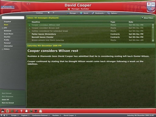 A deux ou trois détails près, Football Manager 2007 sur Xbox 360 est le même que sur PC.