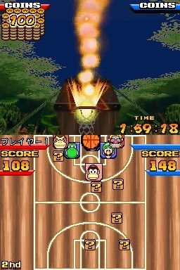 On ne lésine pas sur les moyens chez Nintendo lorsqu’il est temps d’évoquer le line-up de l’éditeur et qui plus est quand il s’agit du plombier moustachu. Après un rapide aperçu des prouesses techniques de Mario dans NBA Street V3, le héros légendaire de Nintendo s’offre son propre jeu de basket avec Mario Slam Basketball. Et comme vous pouvez vous en rendre compte sur les screenshots suivants, il sera possible via l’écran tactile de passer la balle à ses partenaires (Diddy Kong, Donkey Kong, Peach, Bowser, Yoshi, Luigi, Wario …) ou de tirer directement au panier. Cet avantage de gameplay non négligeable sera par ailleurs l’occasion pour Nintendo de créer quelques mini-jeux bien délirants que l’on découvrira le 10 novembre prochain en Europe.