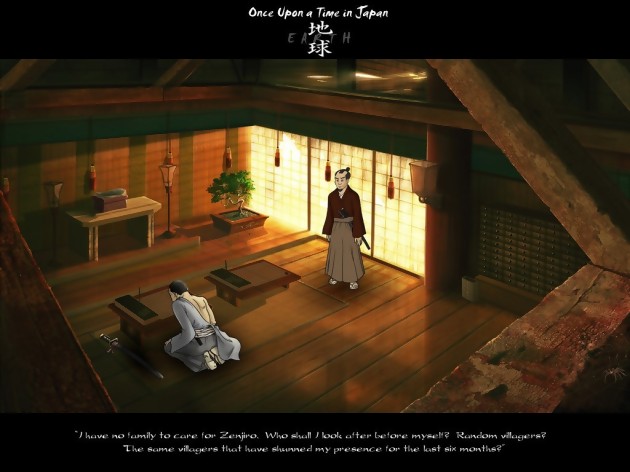 Les développeurs d’Abborado Studios sont heureux de nous présenter les premières images de Once Upon a Time in Japan : Earth. Il s’agit du tout premier volet d’une nouvelle série à voir le jour sur PC. Le titre nous fera voyager à travers plusieurs époques de l’histoire japonaise en incarnant Zenjiro, un samurai qui après avoir quitté son clan pour recouvrir la tranquillité avec sa famille doit parcourir les larges étendues de la province d’Etchu à la recherche de sa femme, de ses enfants et d’autres survivants. En voyant ces images, on comprend que Once Upon a Time in Japan : Earth sera un jeu d’aventure dans la grande tradition du point & click, ce qui comprend donc un maximum d’interactions avec les personnages et les décors pour une mise en scène alléchante. La sortie du titre est programmée pour la fin d’année, il ne reste plus qu’à trouver un éditeur pour Abborado Studios.