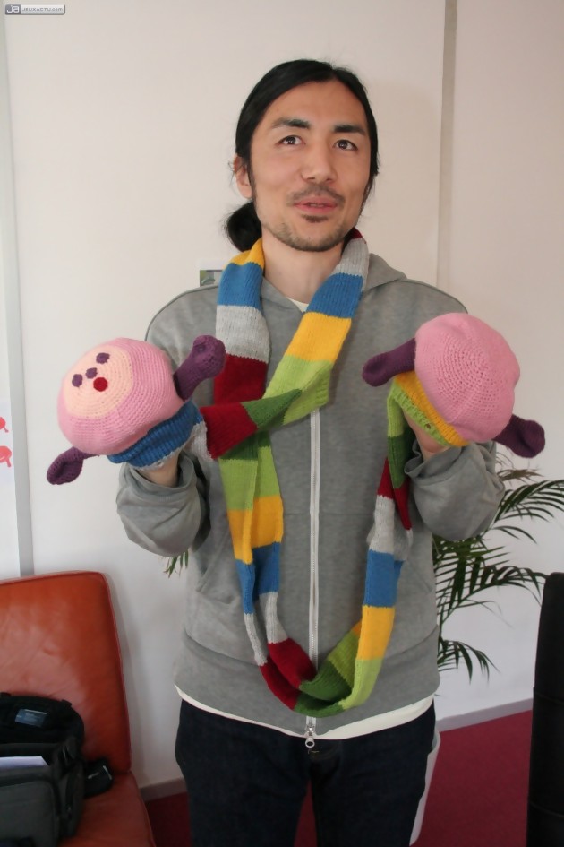 Keita Takahashi : Bonjour, mon nom est Takahashi Keita. Je suis né en 1975, donc j’ai 33 ans cette année. J’ai fais des études de sculpture à l’université pour ensuite atterrir chez Namco où j’ai créé Katamari Damacy en 2004. Et aujourd’hui, je sors Noby Noby Boy.