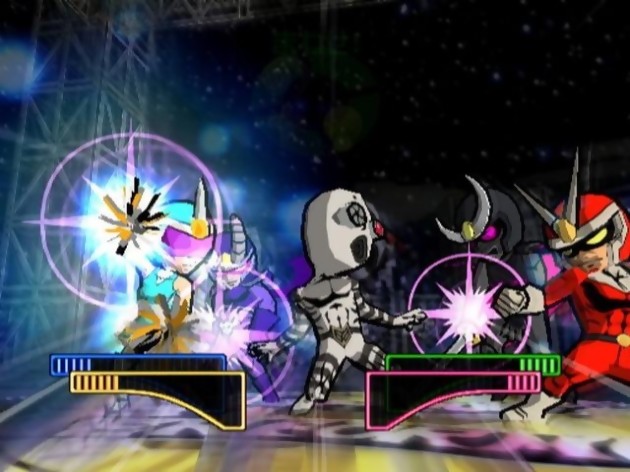 C'est le 24 février prochain que sortira Viewtiful Joe : Red Hot Rumble, troisième volet de la série à voir le jour sur GameCube. Il ne s'agira tout à fait d'un suite mais plutôt d'un épisode inédit qui lorgne pas mal du côté des la série Smash Bros Melee. On retrouvera tous les personnages de l'univers déjanté de Viewtiful Joe avec en prime des protagonistes sortis tout droit de la série animée qui lui est consacrée. A noter qu'une version PSP est également prévue mais les images qui suivent sont bel et bien issues de la mouture GameCube.