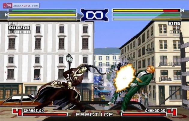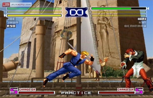 Il se sera écoulé presque deux ans entre la sortie sur Neo Geo de KOF 2003 et son adaptation sur PS2 en France. Une attente longue mais néanmoins ponctuée de plusieurs épisodes de KOF depuis que SNK Playmore a décidé de convertir ses hits sur les autres supports du marché. Si le résultat n'est pas toujours probant, force est de constater que certains efforts ont été faits depuis le début et ça sera un véritable plaisir que de rejouer à The King of Fighters 2003 dans sa version PAL. En attendant, voici des screenshots maison de la version preview PS2 qui tourne à la rédac' depuis plusieurs semaines. La sortie de The King of Fighters 2003 est fixée au 28 janvier 2006 sur Xbox et PS2.