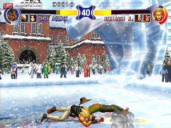 Ce midi, nous vous dévoilions des artworks inédits de The King of Fighters '94 Re-Bout sur PS2. On continue de vous parler du jeu signé SNK Playmore en divulguant cette fois-ci une belle flopée de screenshots maison capturés par nos soins. Les joueurs qui suivent la série constateront que les décors ont été redessinés entièrement et proposent désormais bon nombre d'éléments en 3D. Si les sprites des personnages sont restés identiques, ils ont néanmoins fait l'objet d'un lissage afin de rendre l'ensemble plus aguicheur visuellement. Le gameplay, quant à lui, n'a pas changé d'un iota et même le timing en matière d'enchainements de combos est le même que celui du KOF '94 original. On vous en dira davantage lors du test du jeu. A noter qu'aucune sortie de The King of Fighters '94 Re-Bout en Europe (ni aux Etats-Unis d'ailleurs) n'est annoncée pour le moment.