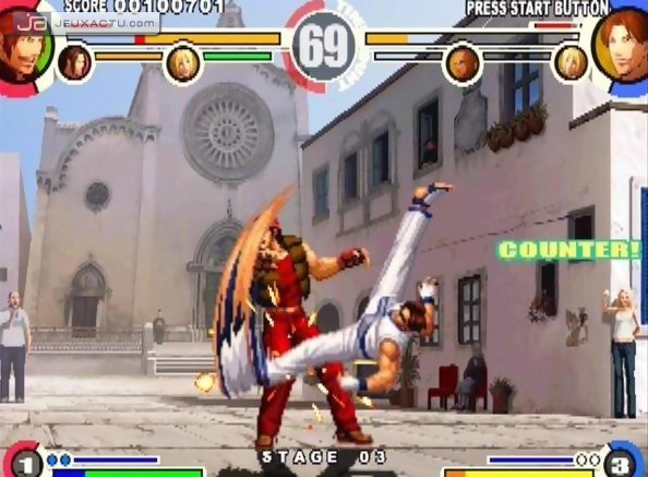 En vente libre depuis 24 heures au Japon, The King of Fighters XI est arrivé à la rédaction dans son tout beau packaging PS2 accompagné d'une coupure de journal relayant les principales actualités des titres SNK Playmore. Il s'agit donc du onzième épisode de la série et le second à avoir été développé sur AtomisWave. Il succède bien évidemment à The King of Fighters 2003 (disponible depuis quelques semaines en Europe) en reprenant les principaux personnages et le gameplay de ce dernier. SNK Playmore poursuit donc sa percée du tag battle, déjà appréciable et approfondit encore plus le système de jeu avec l'arrivée de Super Cancel et autres ajustements techniques. Côté casting, pas moins de 33 personnages (11 équipes de trois) prennent le départ avec pour but de démasquer celui qui se cache derrière l'organisateur du tournoi. D'autres personnages (des guest-stars pour la plupart) viendront étoffer la liste des belligérants déjà bien conséquente. Hayate, Gai, Silver et bien d'autres encore seront accessibles en terminant le jeu à 100%, sans oublier les persos exclusifs à la version PS2, notamment Geese Howard et Mai Shiranui. En attendant de vous rédiger notre test import, voici quelques images maison (111 au total) pour prendre l'ambiance de ce KOF XI qui s'annonce sous les meilleurs auspices.