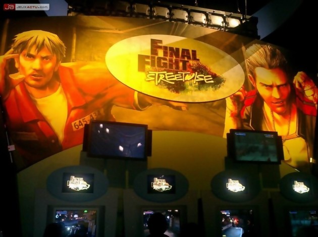 Un peu plus loin, pour Namco, l’essentiel se passe sur une vaste scène où des maîtres en art martiaux, lookés sauce Soul Calibur, viennent combattre à tour de rôle sur fond de musique de Gladiator. Classe.