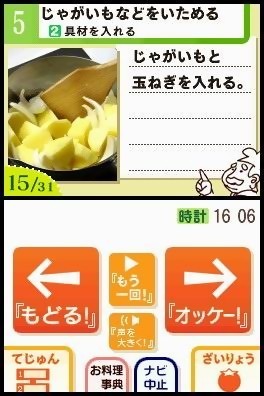 S'il y a bien une cartouche qui relancera le débat sur ce qui sépare un jeu vidéo d'un logiciel, c'est bien Shaberu! DS Oryori Navi. Quoi de mieux qu'un simulateur intéractif de recettes de cuisine pour élargir son public jusqu'à la ménagère curieuse ? Car oui, le titre que vous avez sous les yeux n'est pas un jeu à proprement parler comme peut l'être Cooking Mama qui traite lui aussi du même thème, mais bien un répertoire de recettes typiquement japonaises. De la viande aux légumes en passants par les oeufs, le tofu, le riz, les nouilles ou encore les desserts, Shaberu! DS Oryori Navi a pour objectif de vous guider visuellement et oralement dans la réalisation de votre bon petit plat. Anodin en apparence, ce titre n'est autre qu'un fier représentant de la gamme Touch Generations, qui s'est bel et bien vendu à plus de 100.000 exemplaires lors de son lancement au Japon. Dire que pendant ce temps, certaines boîtes se fatiguent encore à réaliser des jeux d'action au buget dantesque ou des RPG merveilleux. En attendant une sortie éventuelle en Europe avec des recettes adaptées en conséquence, vous pouvez retourner à votre micro-ondes.