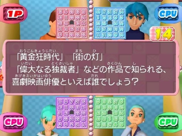 L'arrivée de Densetsu no Quiz ô Ketteisen (connus aussi sous le nom de The Legend of The Quiz Tournament of Champions) le 8 décembre prochain au Japon est l'occasion rêvée pour les amateurs de mini-jeux de sortir le micro (fourni avec Mario Party 6 pour ceux qui auraient manqué le coche) du placard. Encore faut-il que les joueurs concernés soient à l'aise avec la langue des samouraïs car les questions de Densetsu no Quiz ô Ketteisen sont totalement en japonais, oralement comme à l'écrit. N'étant nullement prévu en Occident, mieux vaut être bilingue (et ses amis par la même occasion) pour profiter pleinement du jeu. Pour les autres, il y a ces quelques images.