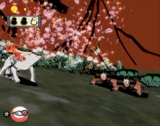 Cette année, l’ovni de Capcom se nomme Okami ! Déjà connu par les amoureux d’expériences japonaises, le titre se dévoilait enfin en version jouable. L’occasion rêvée pour découvrir la richesse de ce monde où les divinités nippones règlent leurs différends à grands coups de pinceaux et d’aquarelles mystiques ! Sous la fourrure immaculée d’un loup représentant la déesse Amaterasu. Cette dernière souhaite redonner vie à la nature en la recolorant et c’est ainsi que vous allez entreprendre un grand voyage sacré censé vous faire prendre conscience combien la nature est belle, combien il faut la respecter. Réalisé avec un style proche de la peinture traditionnelle, Okami s’impose comme un véritable régal visuel. Plus fort encore, son gameplay semble plus étoffé que prévu grâce à l’apparition du Pinceau Céleste. Kékédonc ? Eh bien tout simplement un mode vous permettant, pendant un cours instant, de figer le temps et de peindre directement sur l’écran via votre stick analogique. Un trait net pour attaquer un ennemi, un cercle résoudre une énigme, un point pour composer une constellation… les possibilités sont quasi illimitées et les techniques ancestrales à débloquer au nombre de 13 ! Enfin un titre enchanteur de bout en bout…