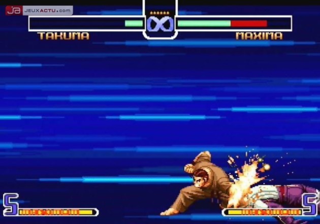 Puisque la version test de The King of Fighters 2002 traîne ses guêtres à la rédaction depuis quelques jours déjà, nous avons décidé de mettre la main à la pâte et de vous faire profiter de quelques (enfin tout est relatif) screenshots capturés par nos soins. Les images sont issues de la version PS2 et elles mettent en exergue les plus belles furies (en mode Max 2) avec quasiment l'ensemble des personnages du jeu. Est-il utile de rappeler que KOF 2002 fait partie des meilleurs épisodes de la série et que son arrivée sur Xbox et PS2 pour la fin juillet est juste un vrai bonheur pour tout amateur de bonne baston 2D.