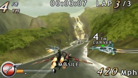 Les jeux d’avions se refont une santé sur PlayStation Portable après un long moment de passage à vide. Aux côtés d’After Burner ou Ace Combat, il faudra compter sur l’arrivée le 9 mars prochain de M.A.C.H. : Modified Air Combat Heroes. Une nouvelle fois, Vivendi Universal Games lâche une fournée d’images de son titre à mi-chemin entre simulation d’avions, dogfights et courses. En choisissant parmi les 11 engins disponibles, il faudra trouver le bon compromis entre vitesse maximale, accélération, robustesse et puissance de feu. Afin d’améliorer vos acquisitions, vous débloquerez de nombreux accessoires et équipements pour des milliers de combinaisons possibles. Il va sans dire que tous vos bidouillages marcheront aussi en mode multijoueur.