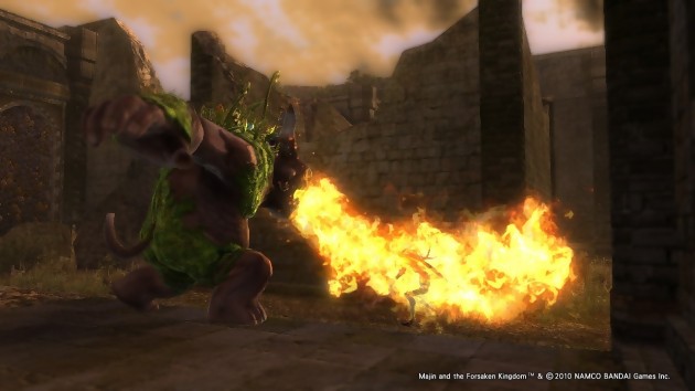 Composé de 5 niveaux plus ou moins ouverts qui ne sont pas directement liés entre eux, Majin and the Forsaken Kingdom s'est ici dévoilé sur la zone des Ruines, dans laquelle les situations de jeu possédaient déjà une diversité très convaincante. Entre actionner une catapulte afin de projeter le léger Tepeu sur des hauteurs inaccessibles, remplir d'eau la bouche de Majin pour que celui-ci aille la déverser dans la roue à aubes d'un moulin, simplement aider le voleur à se hisser sur un rebord ou encore déplacer des éléments afin de libérer un passage, Game Republic semble avoir voulu donner à Majin and the Forsaken Kingdom un champ de gameplay qui se renouvelle régulièrement. D'autant qu'à la manière d'un Metroid ou d'un Castlevania, certaines zones que le joueur traverse sans rien déclencher nécessitent un retour quelques heures plus tard dans le but de tirer parti de l'un de ses nouveaux pouvoirs. Doux, convaincant et original dans son traitement artistique, Majin and the Forsaken Kingdom est très clairement une bonne surprise en l'état. Encore perfectible graphiquement, le titre de Bandai Namco Games et Game Republic devrait néanmoins arriver à se démarquer, tout du moins sur son concept et son enrobage. Reste à savoir si ce jeu, prévu au départ pour une Wii plus fédératrice, arrivera à trouver son public sur Xbox 360 et PlayStation 3.
