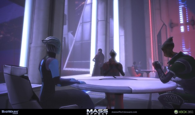 Du coup, on apprécie encore plus le fait de pouvoir assigner des ordres à ses coéquipiers durant les combats; l'écran se freeze, et on peut sélectionner tranquillement les armes, les talents, ou bien encore les pouvoirs magiques que l'on souhaite utiliser au tour suivant, ainsi que déterminer la position de ses partenaires. Autre point sur lequel BioWare s'est attardé sur la démo : les dialogues. Sans doute le point fort du jeu, puisque Greg Zeschuk ne cache pas que Mass Effect dispose d'un scénario solide qui promet pas mal de rebondissements. Le joueur peut intéragir sur les dialogues, et prendre des décisions qui auront un impact sur la suite des événements. Du coup, les développeurs ont intégré deux jauges censées mesurer ces bonnes et ces mauvaises actions : la Paragon et la Renegade. Selon les informations distillées par la maison, il ne sera pas possible d'effacer des actions malveillantes en aidant une grand-mère à travers la rue. Chaque décision prise est définitive, et si l'on bascule dans le coté obscure, aucun retour en arrière n'est envisageable. Petit détail qui a son importance : une bonne tchatche peut s'avérer utile pour éviter des combats. Concrètement, on peut intimider ses adversaires, à condition d'avoir suffisamment de skill. Dans la démo, BioWare nous a présenté Wrex, un mercenaire appartenant à la race des Krogans qui semble être une espèce en voie d'extinction. Si l'on vous parle de lui, c'est que sa venue dans la team de Shephard pourra par moments causer quelques ennuis. Au cours de la démo, l'escouade doit porter secours à la race des Turian, celle qui est responsable de la disparition progressive de l'espèce Krogan. On vous laisse imaginer la tension qui reignait au sein même de l'équipage. Le Commandant Shephard se retrouve alors face à un choix cornélien : les convictions profondes de son allié Wrex, ou la demande de secours des Turian. Nous ne vous en dirons pas plus. La réalisation de Mass Effect alterne le bon et le moins bon. Si la modélisation des personnages, et plus particulièrement leurs expressions faciales, est tout simplement bluffante, on regrette néanmoins que les intérieurs soient en retrait. Certains lieux, comme les étages supérieurs de Citadel, étaient sombres. Pas évident pour venir à bout d'un boss. A l'inverse, les environnements extérieurs sont nettement plus crédibles, comme la planète Virmire qui arbore un paysage tropical séduisant. On attend tout de même d'avoir le jeu entre les mains pour se forger un avis définitif sur le sujet. Pour finir, évoquons tout de même l'ambiance sonore du jeu qui est d'excellente facture, avec des thèmes musicaux qui n'en font ni trop ni pas assez. Quant aux voix, on espère bénéficier d'une traduction d'une qualité identique pour les anglophobes. Mass Effect premier du nom est prévu le 23 novembre prochain, chez nous.