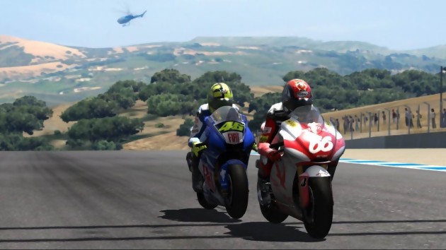 Pour ceux qui ne seraient pas allés faire un petit tour dernièrement sur le Market Place du Xbox Live, sachez que la démo de Moto GP '07 est disponible depuis 24 heures. Cette démo permet de s'essayer à deux modes de courses : offline et online, mais aussi de faire quelques tours de chauffe sur deux des 34 pistes attendus dans le jeu. Il s'agit de la piste du Laguna Seca en mode "GP" et cele de Autoban du mode "Extreme". Moto GP '07 est prévu pour le 3 août prochain sur Xbox 360. Voici quelques screens en attendant.