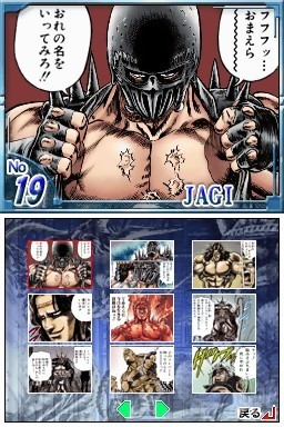 Le manga intéractif Hokuto no Ken - Hokuto Shinken Denshôsha no Michi se dévoile à nouveau à travers cette petite série de screenshots. Rappelons que ce titre développé sur DS nous proposera de revivre le destin de l’homme aux sept cicatrices au travers des planches de la bande dessinée, colorisées pour l’occasion. Bien sûr le jeu nous demandera de rester actif en enchaînant les points vitaux de nos ennemis dans un ordre donné, ou d’interagir à une situation d’un agile coup de stylet façon QTE. Rien de particulièrement original, mais cet Hokuto no Ken DS prévu pour le 14 février prochain au Japon devrait combler les fans de Kenshirô.