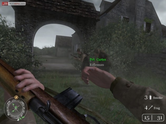 En attendant nos premières impressions sur l'intégralité de son jeu, Activision nous a donné le privilège de publier déjà quelques images de nos exploits de guerre. Enième FPS misant sur le phénomène de mode de la Seconde Guerre Mondiale, Call of Duty 2 joue une fois de plus de scripts impressionnants pour nous plonger directement au cœur du conflit et c’est sans surprise que l’on retrouve les campagnes russes (Stalingrad), Anglaises (en Afrique) et Américaine (sur les côtes françaises). Si la baseline est sans surprise, il faut tout de même avouer qu’elle fait toujours autant mouche, et la réalisation exceptionnelle du titre n’y est pas pour rien. Les balles fusent, l’ambiance sonore nous en donne plein les oreilles et les effets de fumée sont tout simplement les plus beaux jamais vu dans un jeu vidéo. Allez, on ne vous retarde pas plus longtemps et on laisse vos pupilles digérer cette bonne centaine d’images maison.