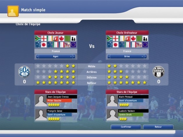 Prévu pour le 18 février, quelques points importants n’étaient pas encore implémentés comme, par exemple, la représentation des matchs avec le nouveau moteur, qui inclut plus de 500 animations différentes. La plupart des stades et des joueurs n’étaient pas non plus à jour, mais il ne s’agit que de petits réglages qui seront sans aucun doute mis à jour d’ici la sortie du jeu. Au final, on dénombre plus de 150000 joueurs recensés, 100 clubs, 50 équipes nationales, 4 nouveaux championnats (Canada, Japon, Irlande, Pays de Galles), près de 50 stratégies différentes entièrement ajustables à vos besoins, 34 stades fidèlement reproduits, une nouvelle interface plus clair et plus rapide, des replays des plus belles actions et une ambiance sonore parfaitement retranscrite. Avec l’appui cette année des ligues nationales françaises et anglaises, d’un soutien sans faille de joueurs pros, amateurs ou retraités, Pro Rugby Manager 2005 ne devrait pas avoir trop de mal à trouver son public. Et en attendant la Coupe du Monde 2007 qui aura lieu en France, il ne reste plus que deux ans à Cyanide pour nous offrir la simulation ultime, celle que toute