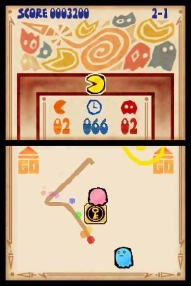 Disponible dans toutes les échoppes japonaises depuis quelques heures, Pac-Pix sortira également aux Etats-Unis où il est annoncé pour le 26 avril prochain. Bien entendu, cette version bénéficiera d'une localisation anglaise, ce qui devrait nous permettre de comprendre beaucoup mieux les informations qui apparaîtront sur les écrans de la DS et dont voici quelques écrans de jeu. Une version européenne est également prévue mais ne dispose à ce jour d'aucune date précise.