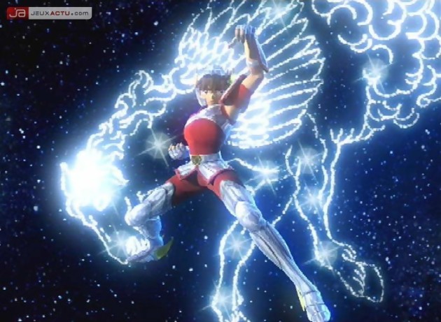 Comme le prouvent ces screenshots maison, le générique d'ouverture Pegasus Fantasy (réalisé en images de synthèse pour le jeu) est bel et bien présent dans la version PAL de Saint Seiya, Les Chevaliers du Zodiaque : Le Sanctuaire, contrairement à ce que nous et d'autres confrères ont affirmé. Il suffit de laisser le jeu tourner pour que l'intro se lance d'elle-même. Autrement, pour y avoir accès manuellement, il faut terminer le jeu une première fois et accéder au mode "Jour de Repos". Seul bémol, la musique d'ouverture n'est pas celle d'origine et il faudra se contenter d'une pâle copie sans saveur ni punch. Grrrr... !