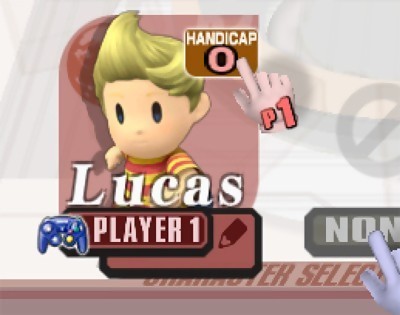 Comme vous le savez déjà sans doute, Super Smash Bros. Brawl n'est pas le premier volet d'une série de jeu de baston. Donc, afin de ne pas léser les débutants qui n'auraient pas rodés certaines mécaniques de jeu sur Nintendo 64 ou sur GameCube, Nintendo a repris le système d'handicap qui était déjà présent dans les précédents volets. Mais ici, plutôt que d'affaiblir les compétences de nos héros, il s'agira plutôt de partir avec une jauge de dégat bien entamée. Ce handicap suivra d'ailleurs le personnage durant toute la durée de la bataille, même après être sorti de l'air de jeu.