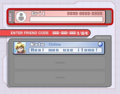 Puisqu'il comportera un mode online - une première pour la série -, Super Smash Bros. Brawl permettra au joueur de créer sa propre liste d'amis, une habitude prise pour chaque titre exploitant la Nintendo Wi-Fi Connection. D'ailleurs, smashbros.com précise que la friend list déjà enregistrée dans la console sera différente de celle que l'on devra configurer dans le jeu. Comme souvent dans pareil cas, la qualité de la connexion, ainsi que tout un tas d'informations relatives au statut de l'adversaire seront affichées pour une meilleure transparence. Classique.