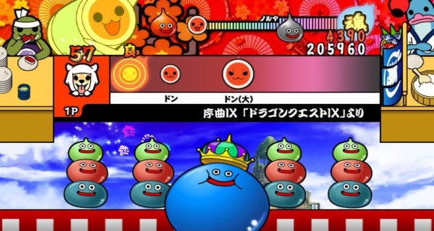Bandai Namco Games nous annonce parallèlement à ce lâcher d'images que Taiko no Tatsujin Wii 2 disposera de fortes collaborations dans sa tracklist. Comme vous pouvez le voir, les slimes feront leur apparition dans ce volet pour la simple et bonne raison que Jokyoku IX, le thème principal de Dragon Quest IX, sera présent. HELLO!! de The Idolm@ster DS sera également de la partie, tandis que côté anime on pourra trouver du Hotaru no Hikari de Naruto Shippûden, ou du Dragon Soul de Dragon Ball Kai. Taiko no Tatsujin Wii : Dodôn to 2-daime! est annoncé pour le 19 novembre au Japon.
