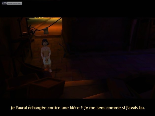 Au niveau du gameplay on reprend la prise en main de Ankh. Pour faire simple et rapide, le clic gauche permet de diriger Assil ou d’examiner un objet, le clic droit sert à agir, tandis que la touche TAB affiche la liste des tâches à réaliser. Comme dans son prédécesseur, la liste des actions est succincte donc quasiment inutile. Lors des multiples déplacements au travers des univers très colorés de Ankh 2, on note d’innombrables approximations du mulot. Ainsi, lorsque l’on choisit un endroit à l’aide du curseur, il faut souvent s’y reprendre à deux fois pour arriver à destination. Très vite ce petit détail vient altérer le gameplay et rend la jouabilité du point & click indigeste. Les dialogues avec les protagonistes sont souvent sans grande importance car ils ne fournissent que peu d’indices sur la nature de leurs besoins. Par exemple au tout début, lorsque Assil se retrouve dans le bar où il doit se mettre les clients dans la poche, certains d’entres eux restent muets comme des carpes, ce qui ne nous facilite pas la tâche. Malgré ces points noirs, Ankh 2 reste un jeu d’aventure relativement fun, bourré d’humour et de références. Les énigmes par exemple sont plus tordues les unes une que les autres. De temps à autres, pour trouver la bonne combinaison d’items, il faudra passer la grande majorité de votre butin au peigne fin. Les objets ramassés au fur et à mesure de la progression s’affichent dans l’inventaire en haut de la page dans lequel on trouve des choses assez loufoques comme du crottin de chameau ou le cousin de Monsieur Prope. On notera qu’à certains moments plus de 24 objets sont disponibles dans l’inventaire, il est alors parfois difficile de se rappeler de tous. Heureusement en fin de niveaux les items disparaissent et le cagibi redevient vierge. Au niveau de l’ambiance du jeu, la bonne humeur est au rendez-vous et les vannes fusent dans tous les sens. Le langage employé est familier mais loin d’être grossier.