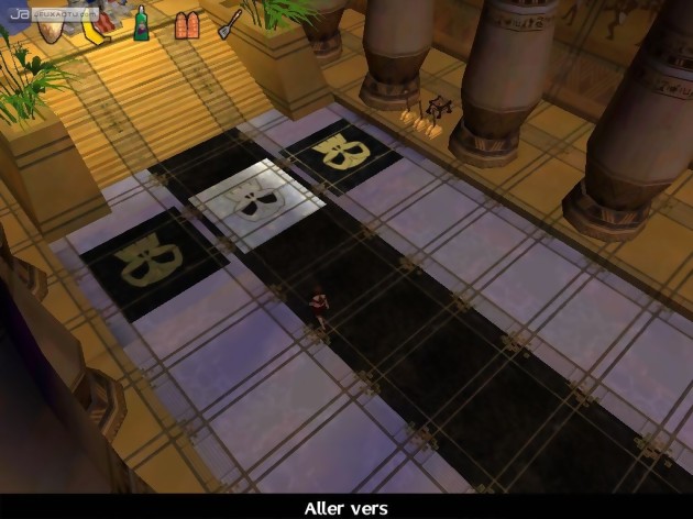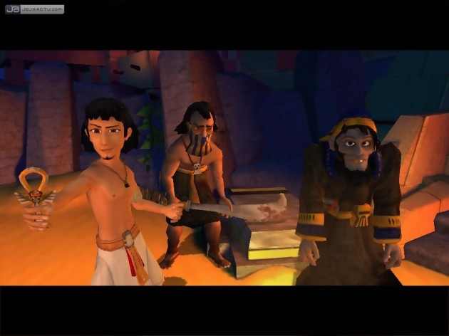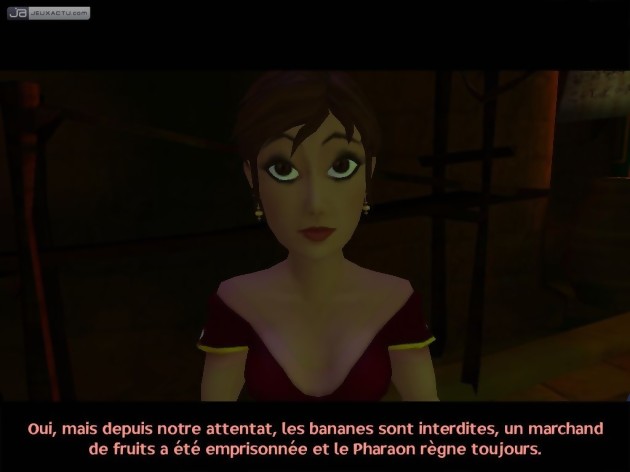 Comme dans le précédant épisode, et dès le second chapitre, on suit de près les quêtes de Thara et du Pharaon, les deux autres personnages jouables du jeu. Thara, la fille de l’ambassadeur d’Arabie accompagnée par trois comparses aussi bêtes que leurs pieds viendra prêter main forte à Assil. Dans le même temps, la jeune femme tente de chiper la coupe destinée aux vainqueurs du championnat de football. De son côté, le Pharaon qui a été vendu comme un simple et vulgaire esclave est emprisonné dans une usine dont il essaie de s’échapper. Si à première vue aucune de ces trois histoires ne se ressemblent, ni de près ni de loin au fur et à mesure on découvre les liens qui les unissent. Ankh 2 reprend l’histoire là où elle s’était arrêtée, c'est-à-dire, à la fin du premier épisode, ce qui devrait être perçu d’un très bon œil par les initiés qui seront dans le bain dès le lancement du disque. A contrario, les joueurs n’ayant pas pratiqué un chouïa Ankh auront bien du mal a se plonger dans l’ambiance. Ankh 2 : le cœur d’Osiris ressemble de très près, et peut-être même de trop près à son grand frère. On retrouve donc la grande majorité des décors visités ainsi que les personnages rencontrés tout au long de l’aventure. Sur ce point là, comme sur bien d’autres d’ailleurs, les développeurs de Desk 13 ne se sont pas foulés et c'est peu de le dire...