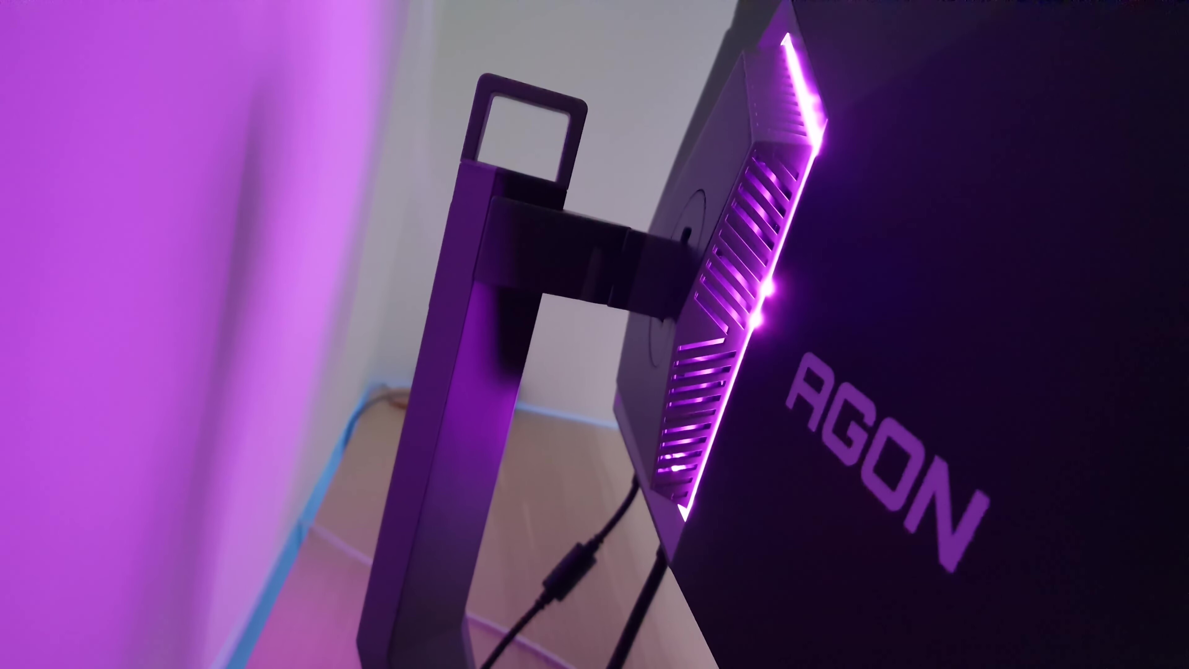 Pour ce prix, on retrouve un écran avec un design assez sobre, mais caractéristique de la marque et de la gamme AGON, à savoir une dalle fine, avec un revêtement mate antireflet et anti-lumière bleue, ce qui limite la fatigue oculaire grâce à sa technologie Flicker-Free. L’écran se distingue aussi par son rendu borderless sur trois côtés, ce qui permet d’avoir une belle immersion visuelle et de profiter de l’affichage lumineux. On trouve aussi un pied métallique plutôt costaud qui se clipse très facilement lors de l’installation, surtout que son poids de 6.85 kg lui assure une belle stabilité. Le moniteur étant fixé à un support déporté et amovible, cela permet d’obtenir un angle d’inclinaison allant de 3,5° vers l’avant à 21,5° vers l’arrière, sachant qu'on peut aussi pivoter le moniteur sur les côtés, et le mettre en position verticale aussi ; bref il est relativement flexible dans ses mouvements. Il peut également être fixé sur un support VESA 100x100 mm, fourni dans le carton. Autrement, au dos du moniteur, on retrouve le fameux hexagone de LED RGB qui permet à AOC AGON Pro AG276UZD de briller de mille feux et d’éclairer le mur sur lequel il est adossé. C’est évidemment un truc de pur gamer, mais justement, c’est auprès des joueurs que la marque taïwanaise s’adresse.
