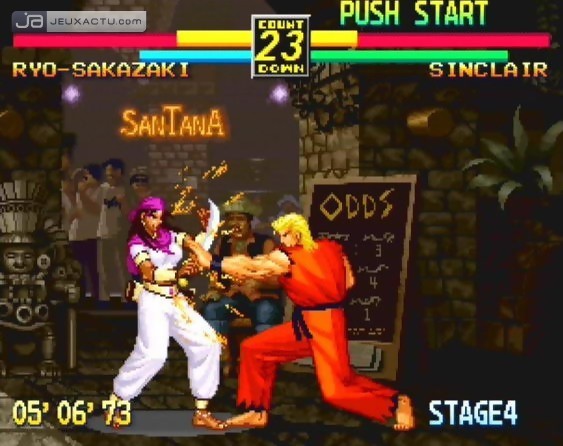 1992. Alors que la planète toute entière découvrait le mythique Street Fighter II de Capcom – le premier jeu de baston en one versus one - SNK débarquait dans les salles d’arcade puis sur Neo Geo avec Art of Fighting. Avec sa cartouche affichant 102 Megs, ses sprites gigantesques, l’introduction du zoom (repris par la suite dans la série des Samurai Spirits), des coups spéciaux ravageurs et la gestion des blessures en temps réel, Art of Fighting avait réussi à rallier bon nombre de joueurs récalcitrants qui n’ont pas tardé à clamer haut et fort que Street Fighter II avait d’ores et déjà trouvé son maître. Si à l’époque, Art of Fighting possédait de sérieux arguments pour tenir tête au titre de Capcom, il faut avouer que 14 ans après sa prime sortie, les choses ont drôlement évolué. Art of Fighting premier du nom a pris un sacré coup de vieux. Pas simplement quelques rides qu’on pourrait faire disparaître avec une crème magique de chez Garnier, non non, le pépère aurait besoin d’une intervention chirurgicale totale pour ne pas paraître aussi has-been.