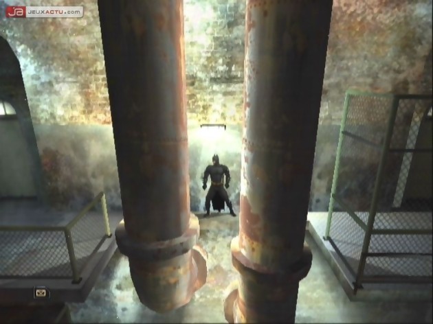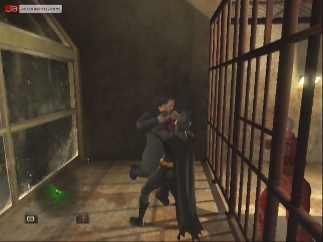 Contrairement à ce que l’on pourrait croire au premier abord, Batman Begins n’est pas un simple beat’em all, et si les combats sont bien de la partie, il faudra prendre soin de préparer le terrain sous peine de se voir plomber de balles 8mm en quelques secondes seulement. Se prenant par moment pour Sam Fisher, Bruce préfère en effet œuvrer dans l’ombre et, entre deux piratages électroniques ou crochetage de serrures, l’orphelin millionnaire va apprendre à jouer avec la peur de ses ennemis pour les saisir au dépourvu. Les interactions avec le décor sont alors mises à l’honneur pour effectuer des réactions en chaîne qui viendront surprendre les hommes de main de l’épouvantail, leur faisant ainsi lâcher leur armes, vous permettant de les combattre à armes égales. En effet, comme le laissait présager le titre de ce chapitre, Batman n’est pas un tueur, et il ne faudra pas compter ramasser les armes adverses pour vous défendre. Ce n’est qu’à la force des poings et des pieds qu’il vous faudra assommer (et non tuer) vos adversaires en ayant pris le soin de les faire parler avant. Si ce coté trop politiquement correct peut faire sourire, l’esprit Batman arrive à rendre cet aspect crédible puisqu’il va permettre de dresser la réputation de l’homme à la cape, et donc de se faire craindre sans même se montrer. Malheureusement, sous ce gameplay original demandant de jouer avec la peur de l’ennemi se cache en fait une trop grande rigidité. En effet, il ne faut pas espérer passer un combat sans avoir effectuer au préalable l’action nécessaire pour rendre le combat équitable et, mis à part la très grande linéarité qui en résulte, on peste lorsque l’on ne trouve pas la zone interactive demandée, la faute à un placement trop éloigné de ceux qui ont été prévus.