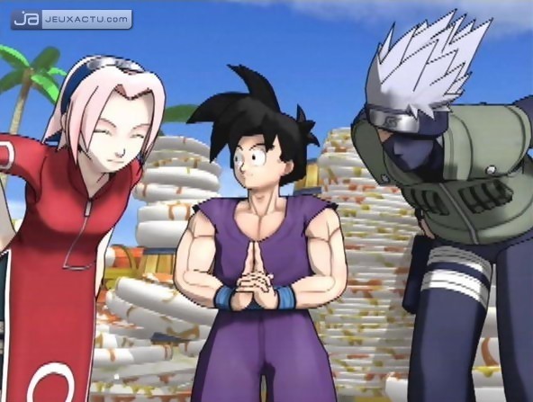 Pouvoir réunir Dragon Ball, One Piece et Naruto pour une confrontation au sommet, il n’y a que dans le jeu vidéo que cela est possible. Et puisque la mode est au cross-over, Bandai Namco Games a fait appel au tandem Tomy Takara et au studio 8ing pour mettre en œuvre ce simili-Smash Bros. sur GameCube et PlayStation 2, histoire de s’assurer un carton pour l’été. Si l’idée de base est on ne peut plus alléchante, le résultat est à la fois mi-figue mi-raisin.