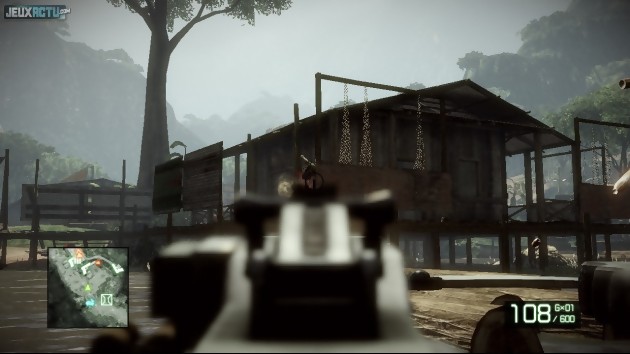 Quel est l’avenir du FPS ? Du canardage sans limite dans des environnements ouverts, de la baston en arène, du meurtre scripté dans des décors fermés ? Le jeu d’action à la première personne de demain intègrera-t-il toujours davantage d’éléments de gameplay empruntés à d’autres genres, RPG, course ou autres, ou tentera-t-il au contraire de se débarrasser de tout artifice parasite ? S’adressera-t-il aux joueurs solitaires, ou se fera-t-il le héraut du multiculturalisme et du polyassassinat en ligne et entre inconnus ? Nous nous garderons bien de jouer les oracles, mais il semble probable que les héritiers de Wolfenstein 3D n’opteront pas pour une voie unique et continueront d’offrir quelques heureuses variations autour de l’apparemment indémodable thème de la boucherie interactive. Demain comme aujourd’hui, l’important restera d’adopter une stratégie claire, d’assumer ses partis pris, bref, de savoir trancher, et pas que des carotides, afin d’en donner pour son argent aux joueurs. Battlefield : Bad Company 2 est à ce titre un exemple à ne pas suivre. La production de DICE, studio spécialisé dans le FPS online, tente ainsi d’offrir simultanément à ses utilisateurs une expérience solo explosive et un multi en béton. Alors que certains de leurs confrères se sont révélés redoutablement efficaces dans cet exercice, les développeurs suédois échouent à moitié.
