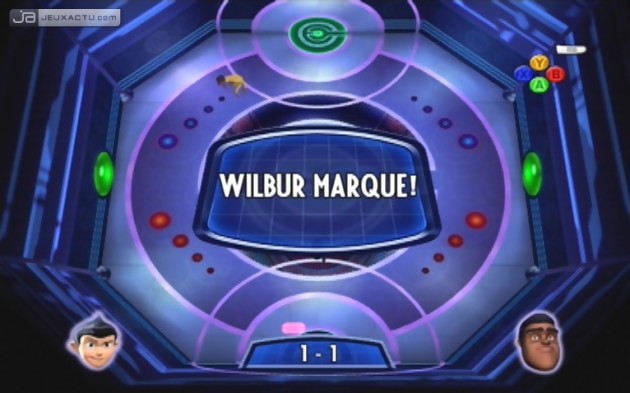 Ce sont ces services qui sont interprétés comme des missions. Et après avoir débuté l’histoire de façon assez dynamique, il est assez dommage de devoir attendre la quatrième mission (la fête de la science) pour s’amuser dans le jeu. Si la partie recherche et exploration semblait inévitable, il est assez regrettable que Bienvenue chez les Robinson ne soit pas construit de la même manière qu’un Ratchet & Clank avec un hub principal et diverses missions à remplir à partir de la demeure familiale. Le jeu se révèle être alors assez étouffant avec de grosses longueurs dues en partie à des va-et-vient continus dans la maison des Robinson. Cible casual oblige, le jeu développé par Avalanche Software se contente souvent du minimum avec quelques énigmes ici et là (assez simples à résoudre) et des séquences de jeu oscillant entre simplicité et difficulté parfois rebutante. La maniabilité assez inégale de Wilbur fait également partie de ces éléments qui ont tendance à plomber l’ambiance du jeu, ne correspondant alors pas du tout à la cible auquel est destinée le jeu. Faire des sauts en réalisant des mouvements du bas vers le haut via le stick analogique droit n’est certainement pas la meilleure idée que les concepteurs chez Avalance Software ont eu pendant la production du jeu. Il ne faudra pas plus de
