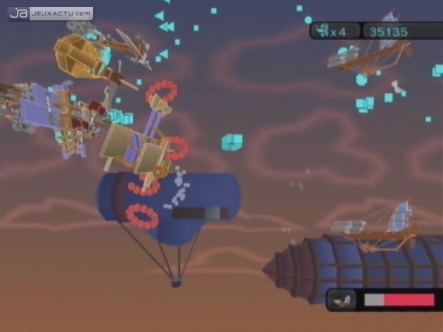 Car c'est bien beau de chercher la touche visuelle qui tue, mais encore faudrait-il qu'une fois la manette en mains, le joueur se prenne un peu plus au jeu. Or, ce n'est pas vraiment le cas ici. D'abord parce que niveau gameplay, on ne peut pas avoir plus consensuel. Le stick du Nunchunk sert à se déplacer et le bouton B à tirer. Voilà, c'est tout. Quitte à faire dans l'expérimental, les développeurs auraient pu songer à se servir des capteurs sensoriels de la Wiimote pour les intégrer à quelques phases de jeu. Mais non, même s'il essaie de nous faire croire le contraire, Blast Works est un shoot'em up d’une banalité absolue. Seule petite trouvaille (et encore, puisqu'elle est directement empruntée au jeu gratuit Tumiki Fighters) : la possibilité de récupérer des morceaux de vaisseaux ennemis détruits pour les greffer à soi et s'en servir comme arme secondaire et/ou bouclier. Une bonne idée dans l'absolu, mais qui est tellement mal gérée qu'elle en devient vite préjudiciable. En effet, à force de se coller des bouts de pixels sur la carlingue, votre vaisseau atteindra vite des proportions gargantuesques, au point d'occuper plus de la moitié de l'écran. Dès lors, on ne sait plus qui est quoi, qui fait quoi, où sont les ennemis, ni même où se trouve la base de votre avion, ce qui causera régulièrement des pertes de vie hasardeuses et horripilantes. Heureusement que les tirs se distinguent grâce à leur couleur, sans quoi ce joyeux foutoir se serait révélé parfaitement injouable. Rajoutez à cela une difficulté plutôt mal gérée (en particulier les boss qui se révèlent assez coriaces), un mode multijoueur dans lequel le jeu peut devenir jusqu'à quatre fois plus bordélique, un éditeur de niveau incompréhensible, et vous obtenez un titre brouillon qui énerve plus qu'il ne divertit.