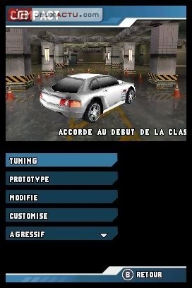 Pourtant, tout n’est pas à jeter dans Burnout Legends sur DS. Les différents et nombreux modes de jeux nous rappellent que nous sommes en possession de la réplique parfaite de la version PSP en termes de contenu. "Tour du monde", "course simple", "multijoueur", il ne manque plus que le mode "crash", néanmoins accessible dans le mode "Carrière". Sur le modèle des autres versions, ce dernier se découpe en plusieurs catégories de voitures. Compact, Muscle, Coupé, Sport et enfin Super, autant de types de véhicules différents à débloquer en fonction des médailles et de l’argent que l’on glanera au fil des épreuves réussies. Les courses sont réparties sur trois continents : Etats-Unis, Europe et Asie et chaque localité propose un type de courses et de tracés bien distincts. Bref, ceux qui ont déjà joué à Burnout connaissent sur le bout des doigts cette façon d’opérer. Jusque-là tout va bien. Ce n’est qu’une fois dans le menu de sélection de son bolide qu’on se rend compte que la DS a bien du mal à rivaliser face à la PSP, ou même à convaincre lorsqu’il faut afficher des graphismes en 3D. La modélisation des véhicules n’a jamais été aussi immonde et un effort vous sera demandé pour tenter de les reconnaître. Le constat d’échec est le même pour les environnements qui font franchement peine à voir. Certes, on arrive à reconnaître certains tracés mais les contours cubiques et tout cet amas de pixels grossiers nous donnent envie de détourner le regard. Pas facile de chasser de son esprit les graphismes époustouflants de la version PSP de Burnout Legends. Certes, la comparaison n’est pas de taille, les deux supports étant diamétralement différentes, mais le titre étant le même d’un support à un autre, il est difficile de ne pas en faire le rapprochement.