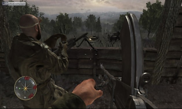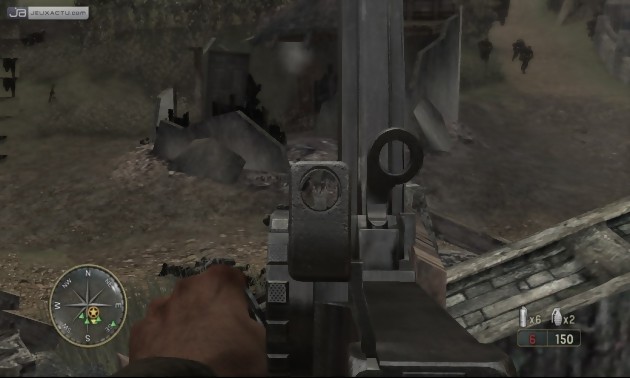 En revanche, ce qui n’a pas changé dans Call of Duty 3 : En Marche vers Paris, c’est bien la gestion des coéquipiers et de l’intelligence artificielle des ennemis. La série n’a jamais été une référence en matière d’I.A. et ce n’est pas Call of Duty 3 qui viendra déroger à la règle. Les Allemands foncent toujours tête baissée et mettent souvent du temps à appuyer sur la gâchette. Le challenge est davantage mis du côté du nombre, voire du surnombre de soldats allemands à l’écran qui respawnent assez souvent de manière visible ou anormale, surtout lorsque le joueur s’amuse à sortir des indications données pour continuer l’histoire sans accroc. Parmi les points fâcheux de Call of Duty 3 : En Marche vers Paris, on peut souligner une gestion des grenades totalement aberrantes. Grenades que l'on peut d'ailleurs renvoyer à l'envoyeur si on se montre rapide. Désormais, plus besoin de fuir à des kilomètres lorsqu’une grenade tombe à nos pieds, il y a peu de chance de nous tuer sur le champ. Au pire, c’est une blessure grave mais jamais de mort subite. Cet atout ou défaut, c’est selon fonctionne également chez l’ennemi qui ne succombe pas toujours à une déflagration. Bizarre, vous avez dit bizarre ?