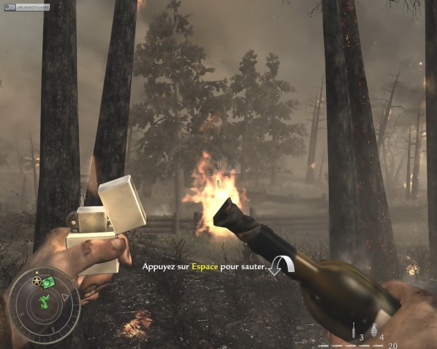 Le jeu nous place alternativement dans la peau d'une recrue russe, évoluant de Stalingrad à Berlin, et dans celle du soldat Miller, plongé dans les conflits du Pacifique. Au vu des autres caractéristiques de ce Call of Duty 2008, on pourrait presque qualifier ce dernier point d'innovation majeure ! Car on se retrouve à combattre des japonais qui, comme le prouve leur tendance persistante à manger avec des baguettes et à avoir les yeux bridés, sont des gens étranges. Fourbes (comme tous les asiatiques), ils n'hésitent pas à se planquer dans les arbres pour mieux vous allumer, à sortir inopinément d'abris camouflés dans le sol, ou tout simplement à vous foncer dessus en hurlant, tels des kamikazes prêts à se sacrifier pour la victoire de l'Empire. L'utilisation de ces clichés (qu'il ne fallait bien évidemment pas prendre au premier degré dans les phrases précédentes...) a au moins ceci de positif qu'elle fait légèrement varier le gameplay, obligeant le joueur à scruter attentivement les décors ou à faire appel à ses réflexes, pour contrer d'un coup de couteau bien placé les corps à corps impromptus. Quant aux décors tropicaux faits d'herbes hautes, ils sont parfaits pour expérimenter les effets dévastateurs de la nouvelle arme à la mode : le lance-flammes ! Sans être révolutionnaire, cet outil est assez amusant à utiliser, et surtout très pratique pour nettoyer les bunkers.