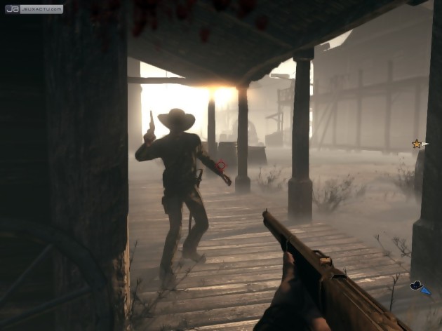 Paradoxalement, Techland associe un gameplay quelque peu raffiné à cette brutalité de chaque instant. Si les armes ne s’enraient plus, leurs caractéristiques sont plus nombreuses et il vous est possible de vous payer de nouveaux jouets auprès des armuriers du coin, moyennant quelques billets ramassés dans les poches de vos victimes. La gestion de la couverture a également été revue, et vous pouvez désormais vous planquer derrière la plupart des objets et dans l’angle des murs, avant de viser avec prudence en gérant vos sorties au millimètre à l’aide de la souris ou de la manette. Un temps d’adaptation est nécessaire, mais le système ne fonctionne finalement pas si mal. En parallèle, et pour coller à l’esprit de l’Ouest tendance Lucky Luke, une jauge d’énergie se remplit pour chaque ennemi abattu. Une fois plein, cet indicateur vous permet de passer en bullet time durant quelques secondes. Histoire d’enrichir un peu la partie, cette séquence dite de "concentration" diffère légèrement selon votre héros. Avec Thomas, les ennemis présents à portée sont automatiquement verrouillés, et vous devez les descendre un à un en effectuant un mouvement arrière avec la souris, comme si vous réarmiez le chien de votre flingue. Une seule balle suffit généralement à vous débarrasser des malotrus. Avec Ray, vous ciblez vos adversaires en baladant un curseur à l’écran. Lorsque le bullet time s’achève, le Révérend balance la sauce. Le duo occupant une place essentielle dans l’aventure, certaines actions peuvent être effectuées avec l’aide du McCall que vous ne contrôlez pas (qui ne peut, hélas, être dirigé par un joueur humain), notamment les entrées fracassantes dans les pièces où vous vous savez salement attendus. Dans ces situations, les deux compères se positionnent de chaque côté de l’issue, et défoncent de concert la porte. La partie bascule en bullet time, et deux curseurs, un pour chaque main, donc pour chaque gun du héros que vous dirigez, traversent l’écran. A vous de cliquer, à gauche ou à droite selon l’arme que vous souhaitez utiliser, dès que l’un des pointeurs passent sur un cowboy inamical.